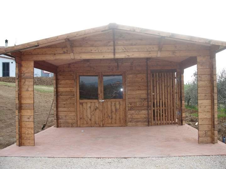 Pareti autoportanti in perline di abete svedese, con superficie qualità a vista e angoli, di spessore 33,45,60 mm con incastro M-F e incastri ortogonali nei terminali. Listello perimetrale in legno di pino, impregnato in autoclave, di altezze 50 mm. Pavimento realizzato con listelli di supporto in legno di pino impregnato in autoclave di sezione indicativa mm 45x45, perline ad incastro M-F di spessore 20 mm, in legno di abete . Travatura per sostegno copertura in legno lamellare di abete . Copertura in perline di rivestimento, in legno massello di abete impermeabilizzazione con guaina ardesiat o altro materiale,coibentazioni pareti e tetto